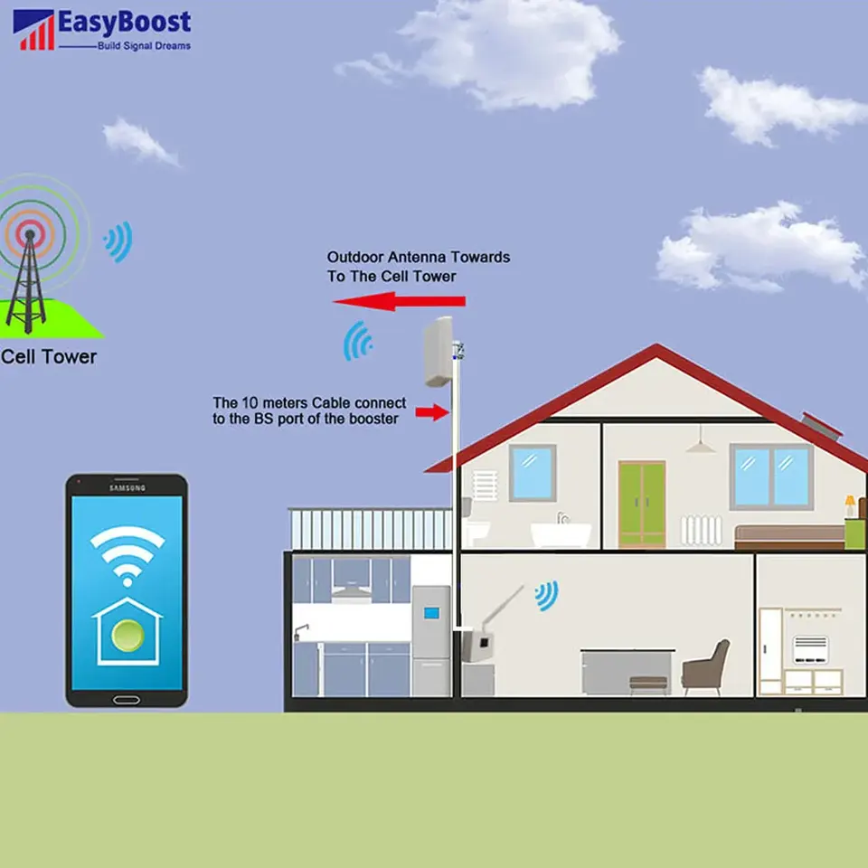 Installation facile Amplificateur de signal 4G 5G Répéteur 2100Mhz B1 Antenne cellulaire GSM avec amplificateur de signal 3G Tuya App Management