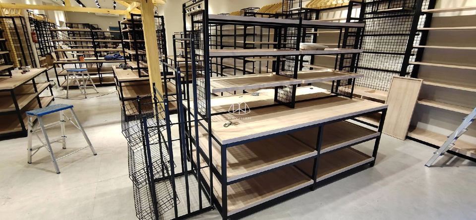 Installation facile, meubles pour magasins de fruits et légumes, décoration de magasins de proximité, présentoir mural, présentoir