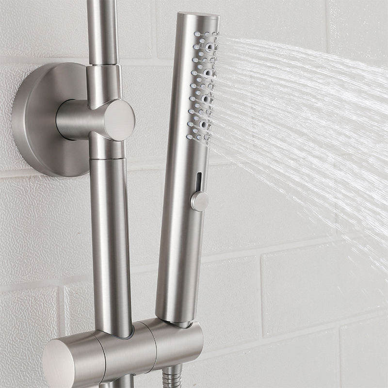 Ensemble de mitigeur de douche à installation facile Ensemble de robinet de douche rond en nickel brossé 304 SUS Système de douche à effet pluie de remplacement avec support