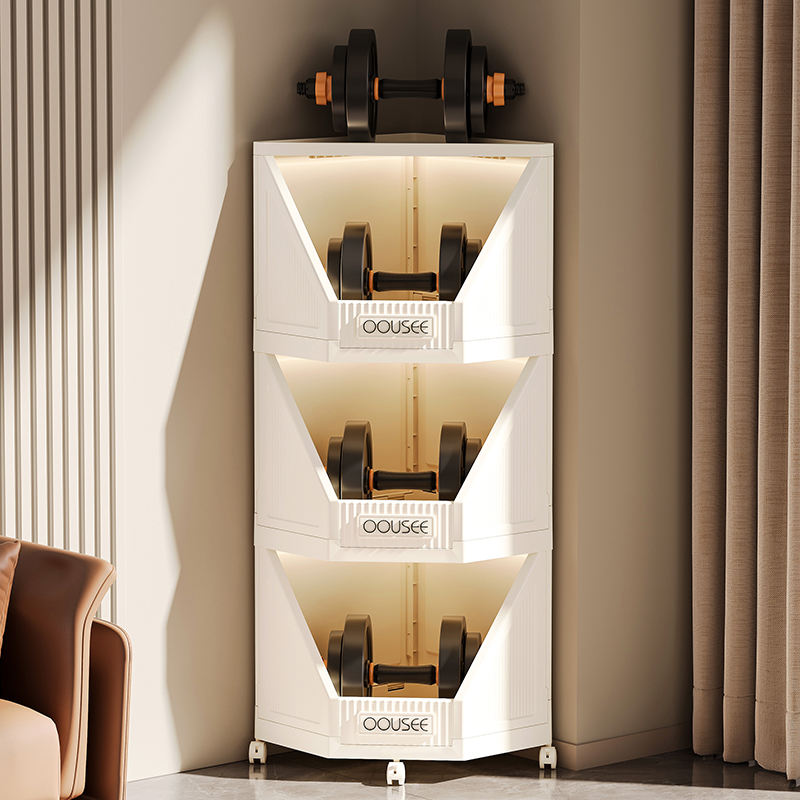 Étagère à collation d'angle à trois niveaux avec porte-épices Armoire de rangement multicouche pour salon et cuisine Installation facile