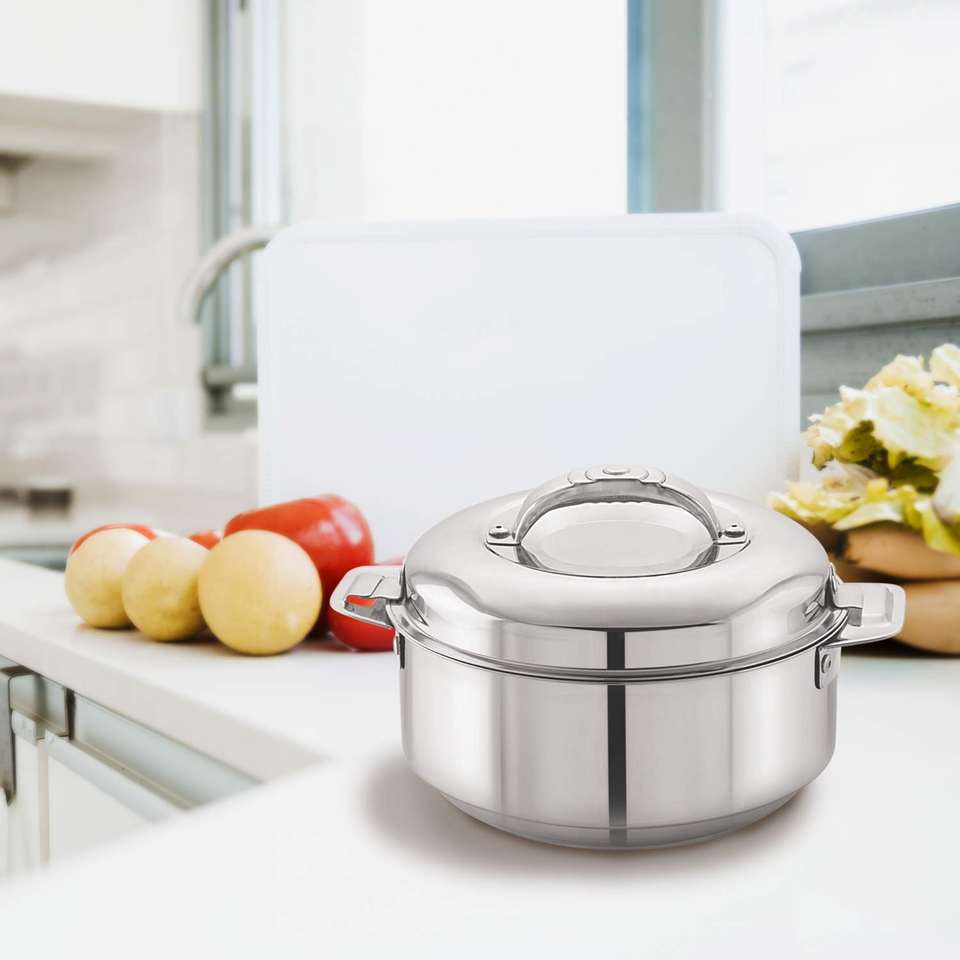 Système de verrouillage facile Casserole isolée à double paroi en acier inoxydable (argent, 2000ml) Casseroles de cuisine