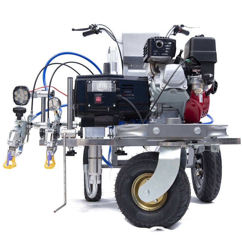Conducteur de ligne sans air d'entretien facile Machine de marquage de ligne de route en aérosol de peinture à froid neuve et d'occasion avec deux pistolets Pompe à moteur fiable