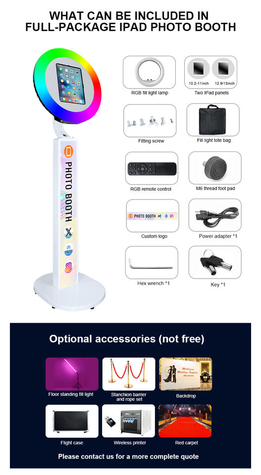 Cabine Photo Métallique Facile à Installer avec Anneau Lumineux RGB Rotatif, Machine Photobooth Portable pour Fêtes, Selfie Pro, iPad Photo Booth