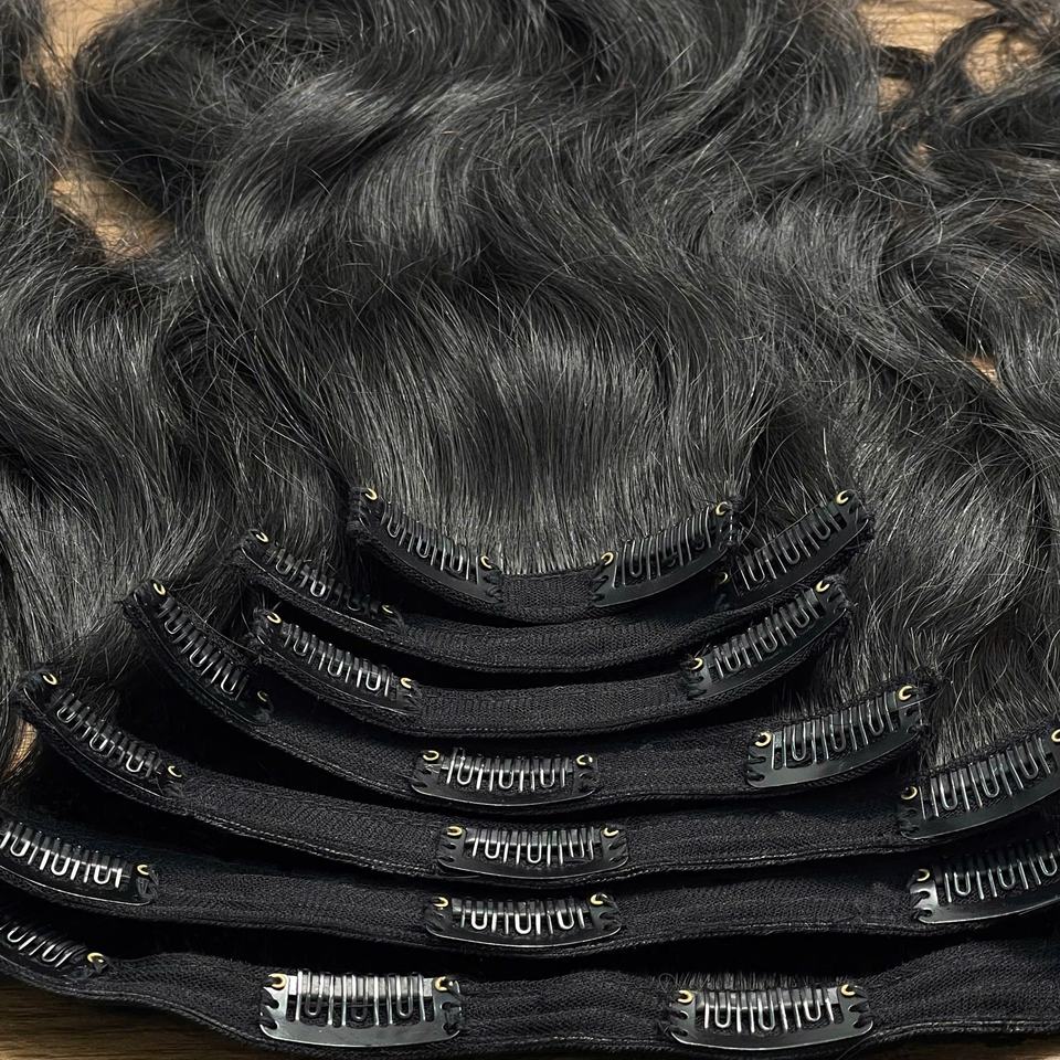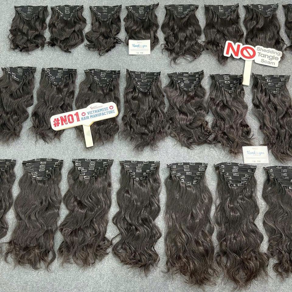 Extensions de cheveux à clips faciles à poser, cheveux humains vietnamiens doublement tirés, cheveux vietnamiens bruts de qualité supérieure, texture douce