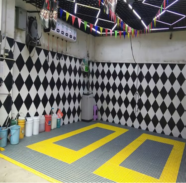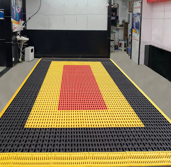 Easy-To-Install Reusable Checkered Under Grill Car Wash Turf Tile Interlocking Floor Mats Car Garage Floor Grate for Houses
