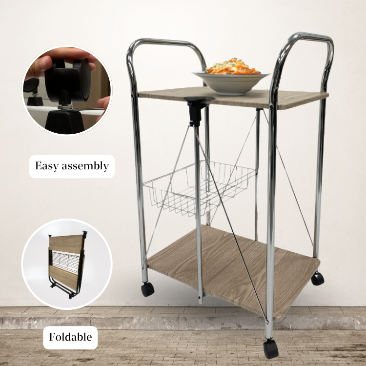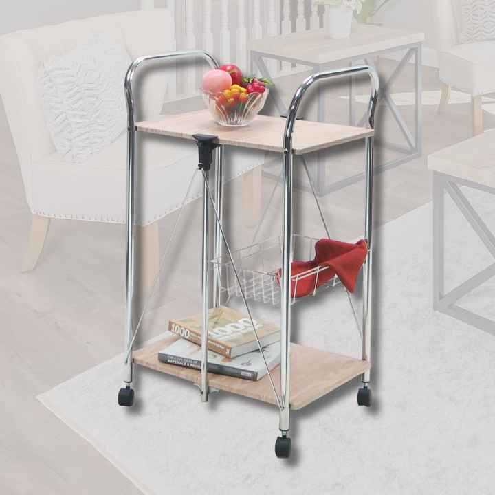 Nom du produit:Facile mouvement simple assemblage 2 niveaux chariot à thé en bois avec poignées