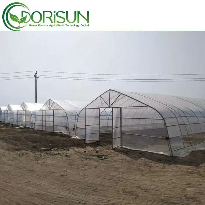 Grande serre agricole à travées multiples à une seule couche et à bas prix facile à manipuler avec cadre en acier galvanisé à chaud pour l'extérieur