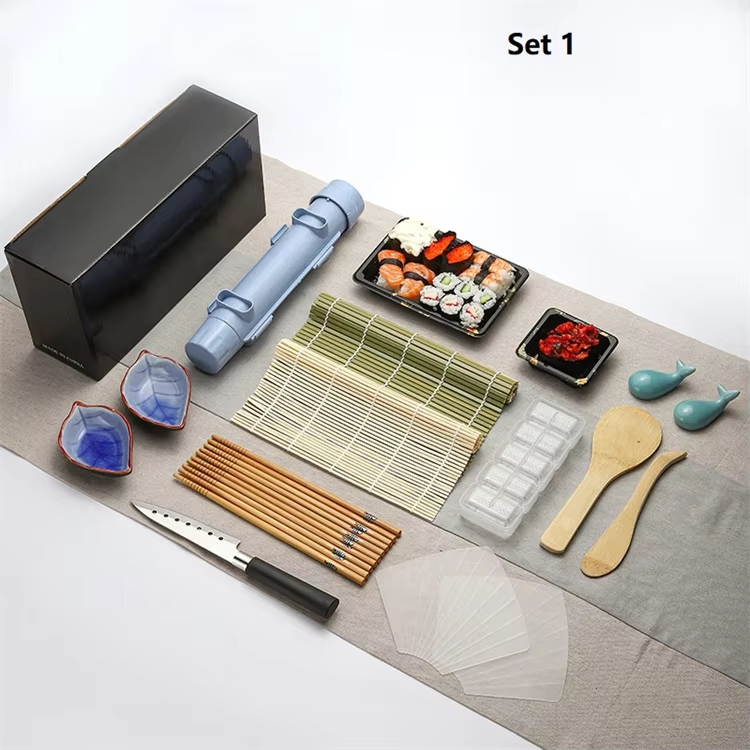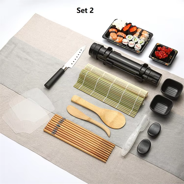 Facile à utiliser DIY fait maison 15pcs tout en un Sushi Roller Mats soucoupes et Bazooka inclus Sushi Making Kit
