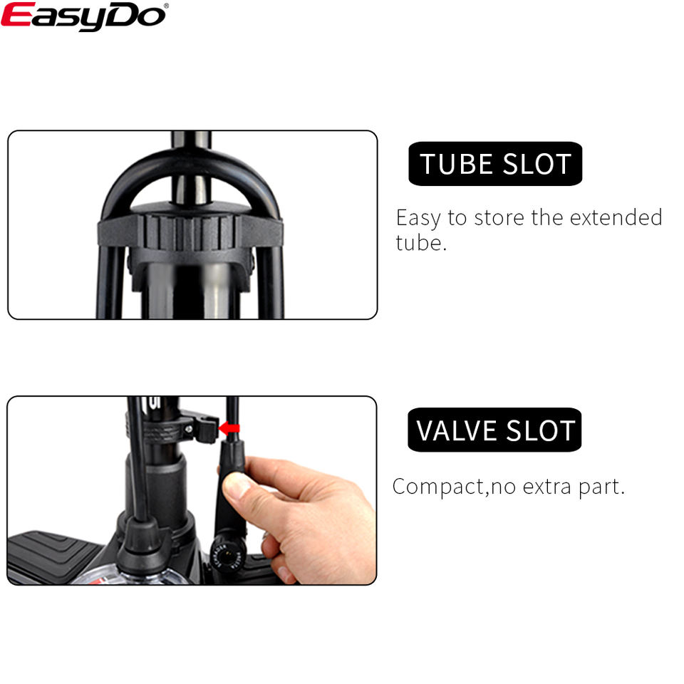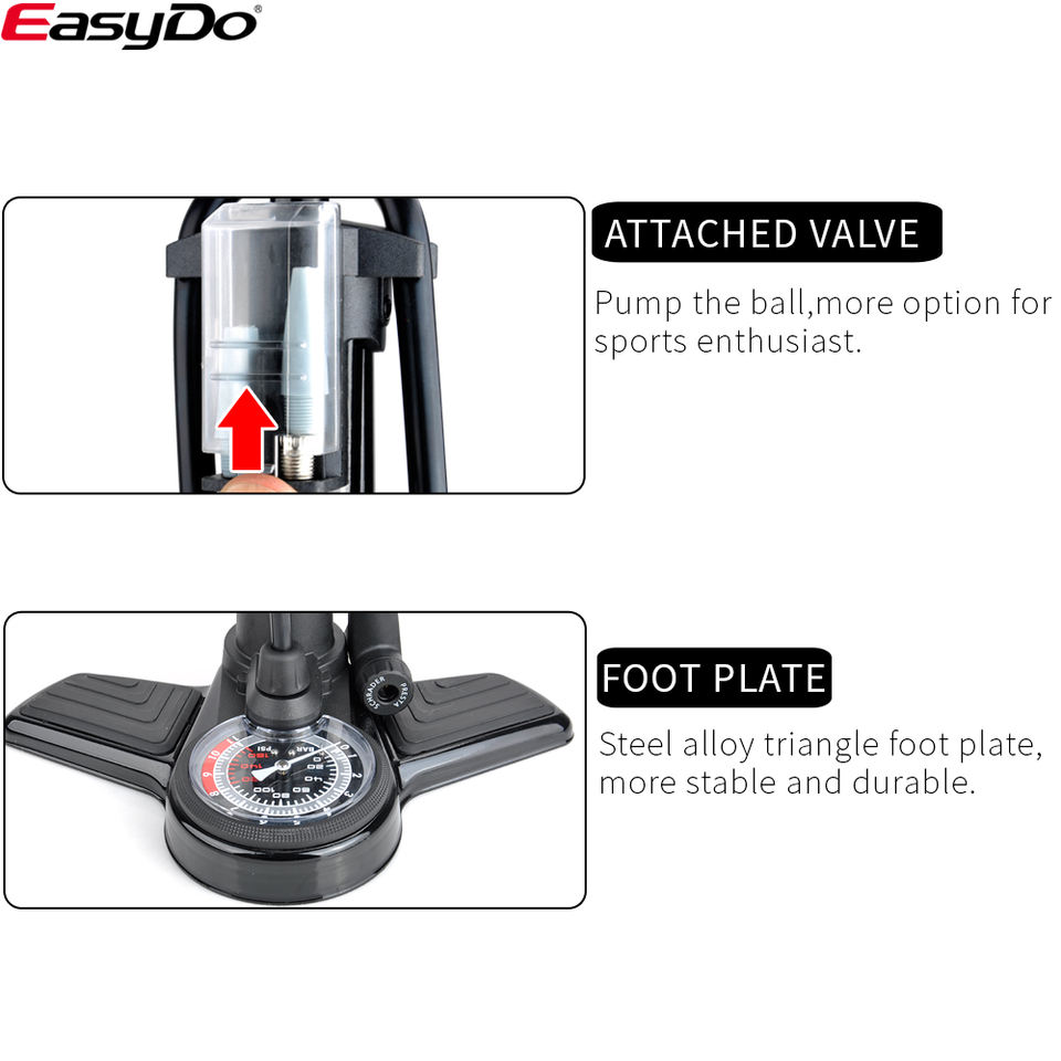 Pompe à pied pour vélo EasyDo 160 Psi, pompe à pied pour vélo, gonfleur de pneus de vélo, pompe à vélo avec manomètre