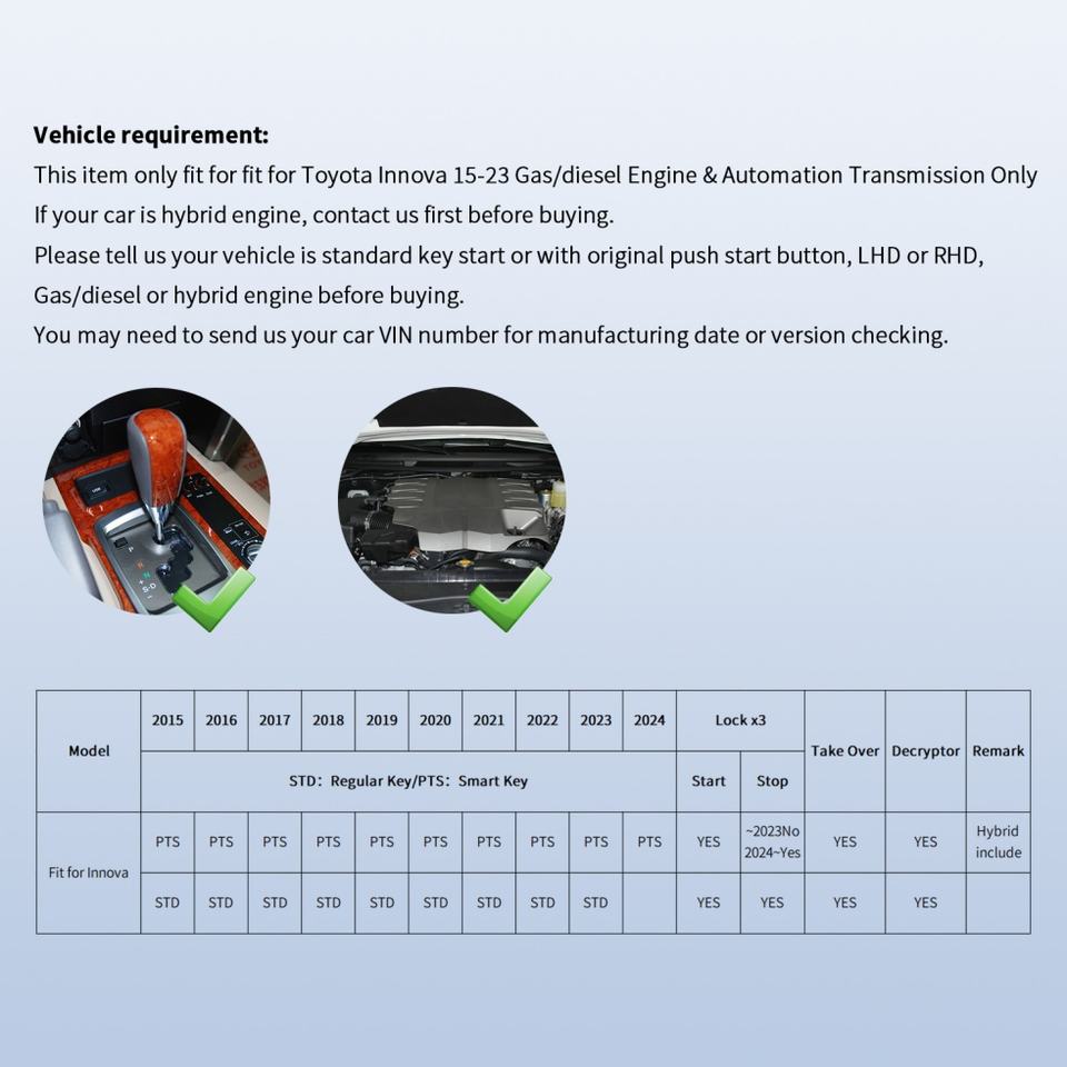 Kit de démarrage à distance EasyGuard pour Toyota Innova 2015-23 – Démarrage par clé pour véhicules essence/diesel/hybrides – Commande en gros