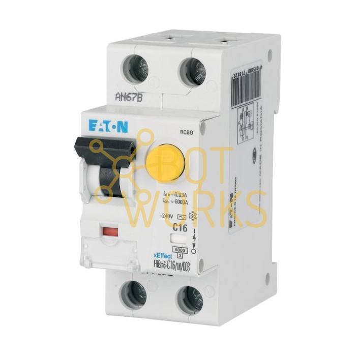 Disjoncteur différentiel Eaton RCBO, C16, 240V, 6kA, Courant différentiel résiduel 0,03A