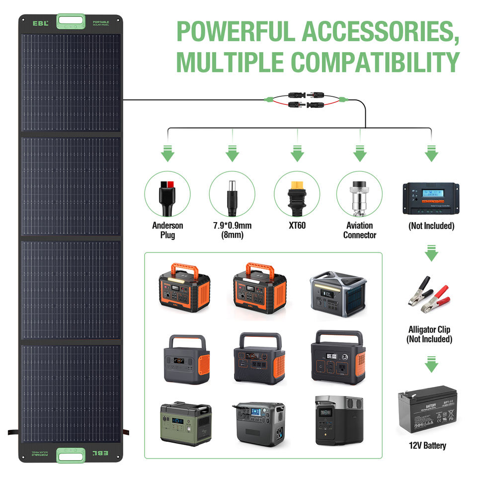Ebl Panneaux solaires portables monocristallins pliables 200W à bas prix pour station d'alimentation extérieure