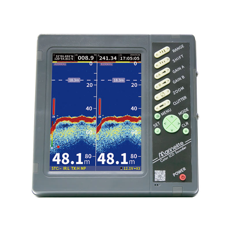 Échosondeur sondeur plus profond à travers l'échosondeur de coque pour la pêche à partir d'un bateau