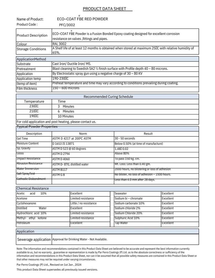 Revêtement rouge de poudre d'époxyde de poudre du manteau RAL 3002 FBE d'Eco pour des applications en acier anticorrosion