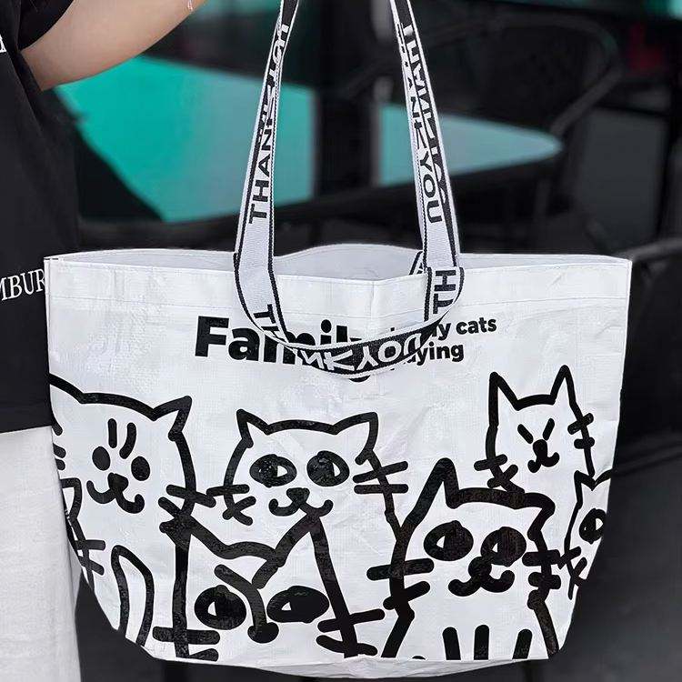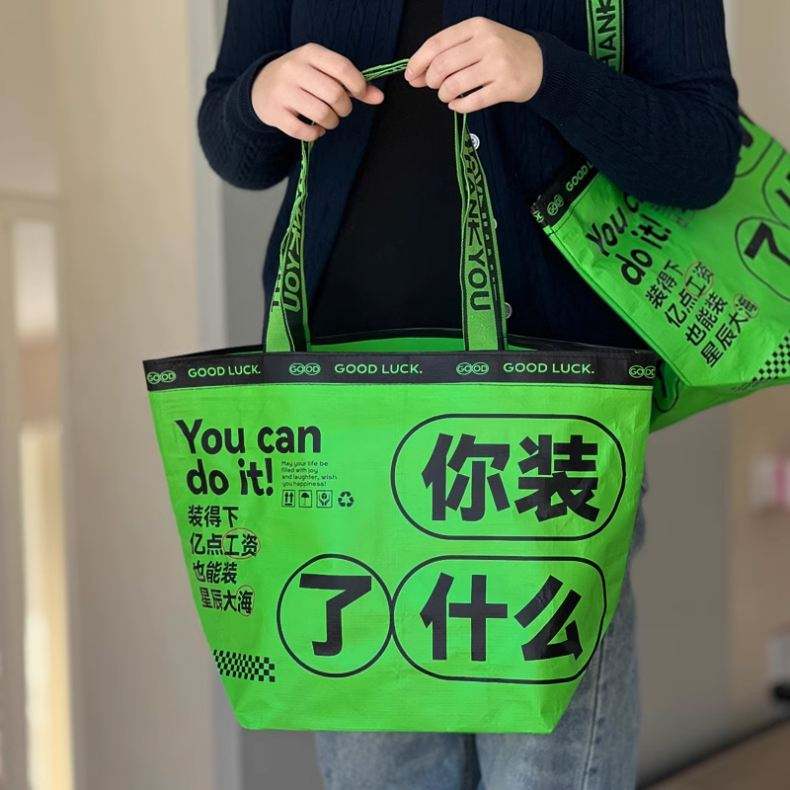 Eco-Coated Woven Polypropylene Grocery Tote Foldable Waterproof Plastic Shopping Bag with Handles