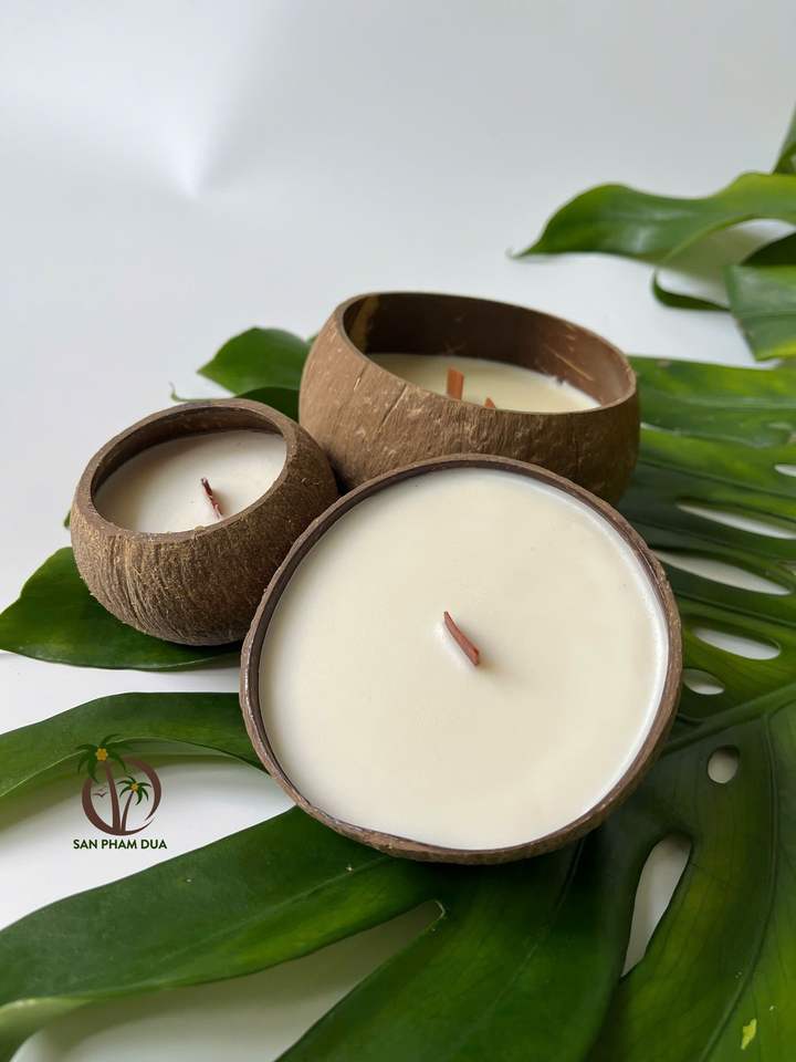 Fournisseur de bougies écologiques en coquille de noix de coco du Vietnam, bougies parfumées naturelles non toxiques, prix de gros / bougies parfumées écologiques