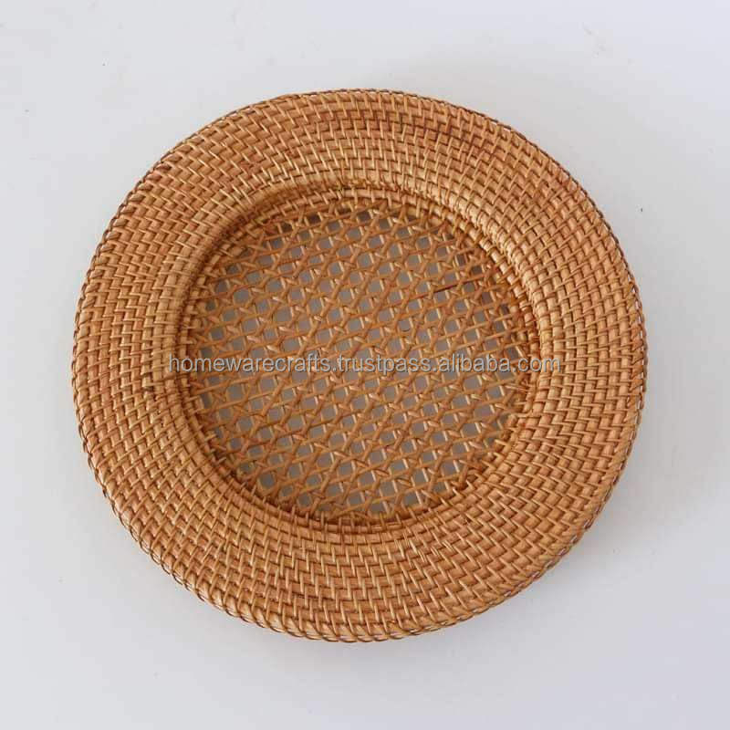 Assiette de présentation en rotin rustique éco-consciente avec motif végétal ajoutant de la chaleur à la décoration de la table