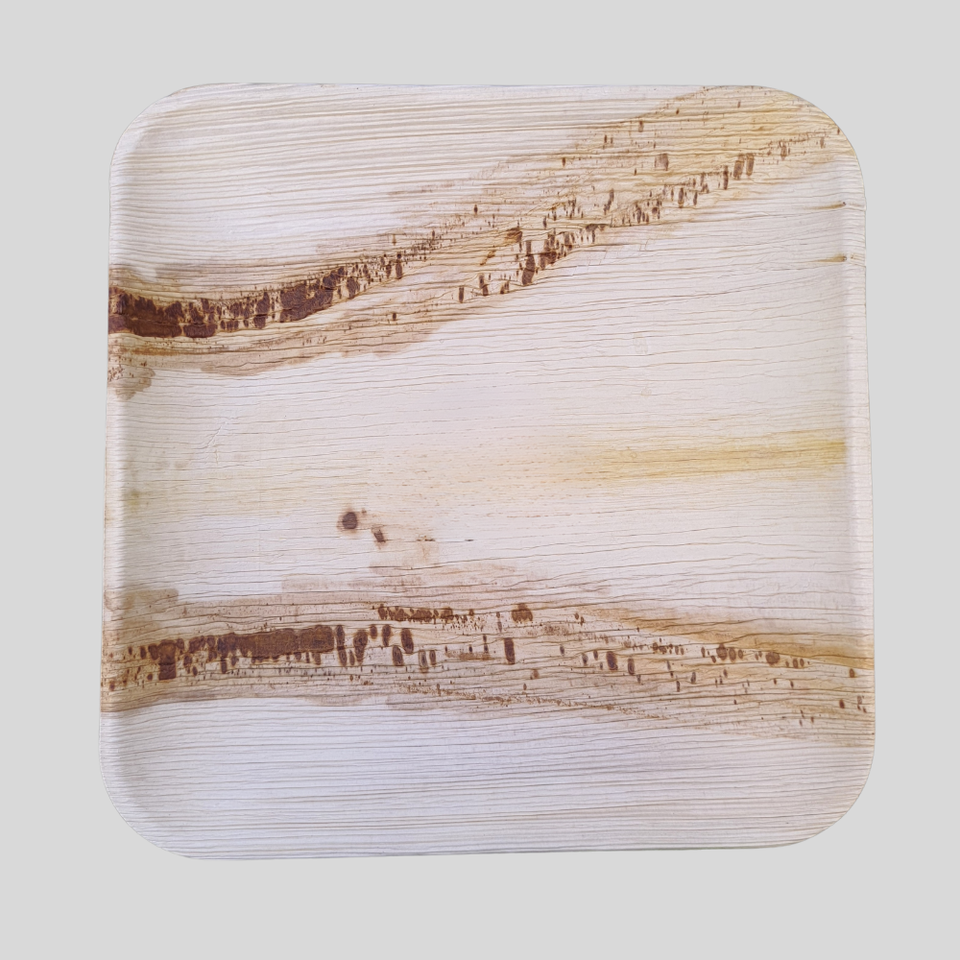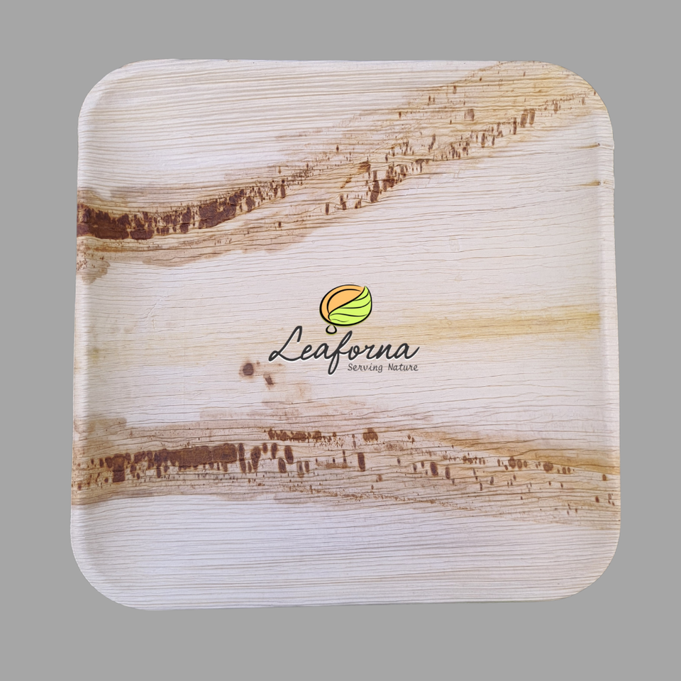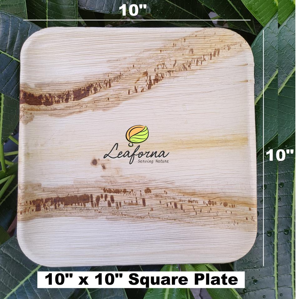Assiettes carrées écologiques en feuilles de palmier de 10 pouces, vaisselle naturelle en Areca, compostable, résistante, réutilisable, robuste
