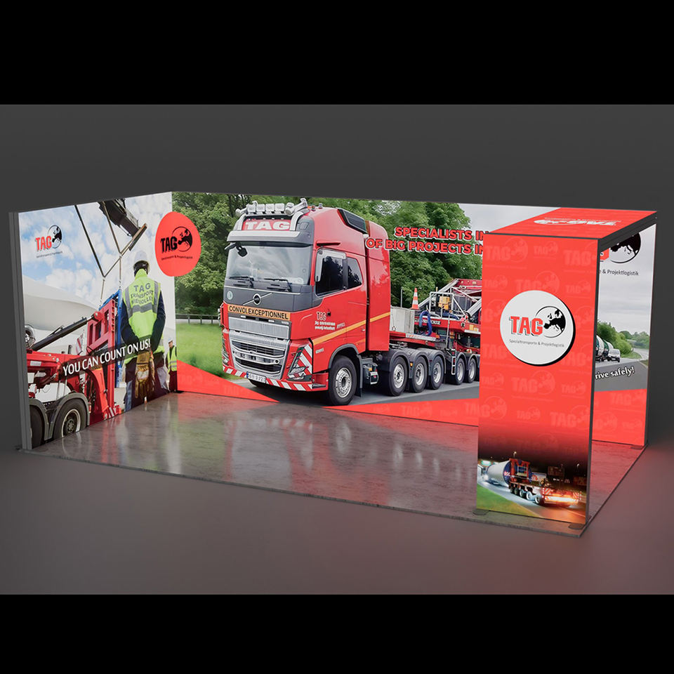 Stand d'exposition écologique 10x20 pieds, montage rapide, structure en aluminium, revêtement en tissu
