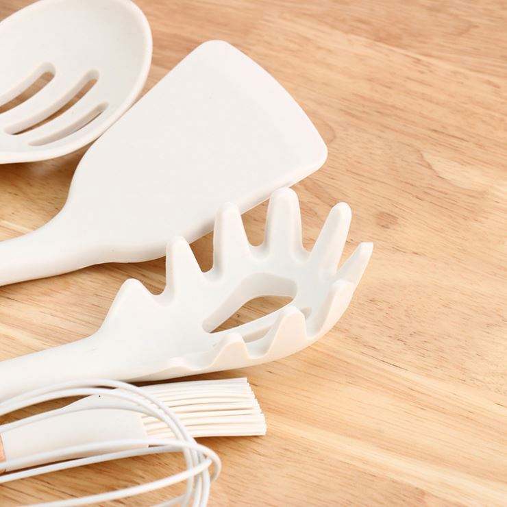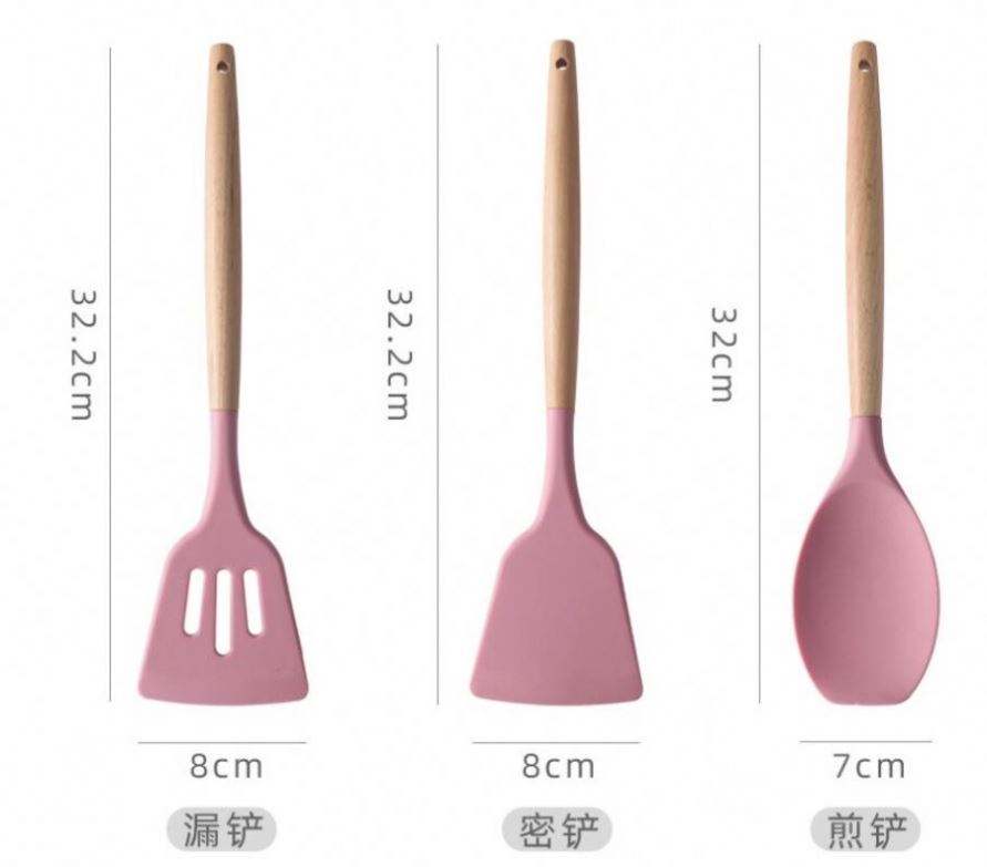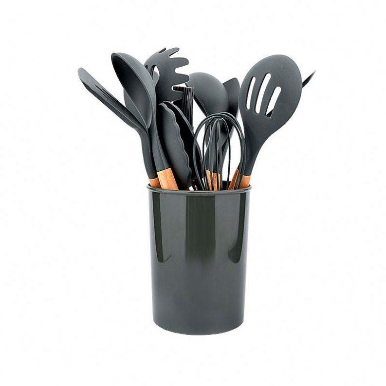Ensemble d'ustensiles de cuisine en silicone écologique 12 pièces avec manche en bois, seau de rangement et pelle, capacité 10L, modèle USA Mairun USA 823