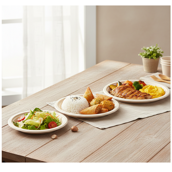 Assiette écologique en bagasse, biodégradable, en pulpe de canne à sucre, jetable, pour restaurant, plats à emporter, traiteur et fêtes