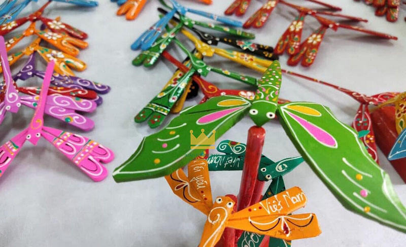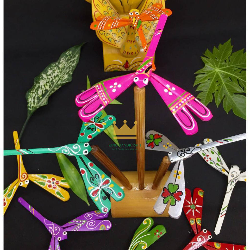 Jouet d'animal libellule en bambou/laque écologique fait main pour enfants, idéal pour les jeux en extérieur et la décoration intérieure - Fabriqué au Vietnam