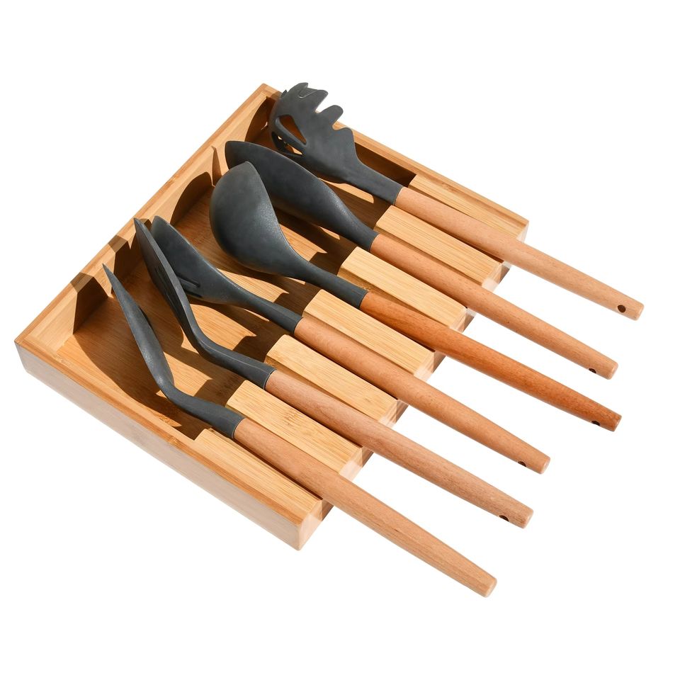 Repose-cuillère en bambou écologique avec coussinet d'égouttement pour plusieurs ustensiles, 6 fentes disponibles, repose-cuillère et porte-cuillère sans BPA