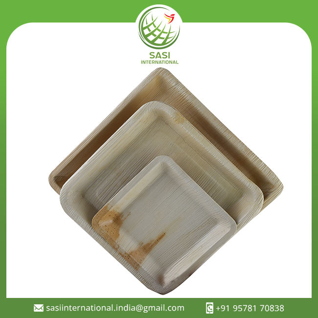 Assiette à dîner carrée jetable biodégradable écologique en feuille de palmier pour le service des aliments dans les mariages, les fêtes ou les pique-niques