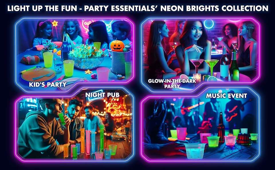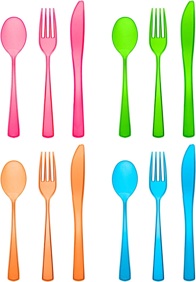 Ensemble de couverts jetables écologiques, biodégradables, recyclables, sans BPA, adaptés aux aliments, pour les fêtes, aux designs néon lumineux