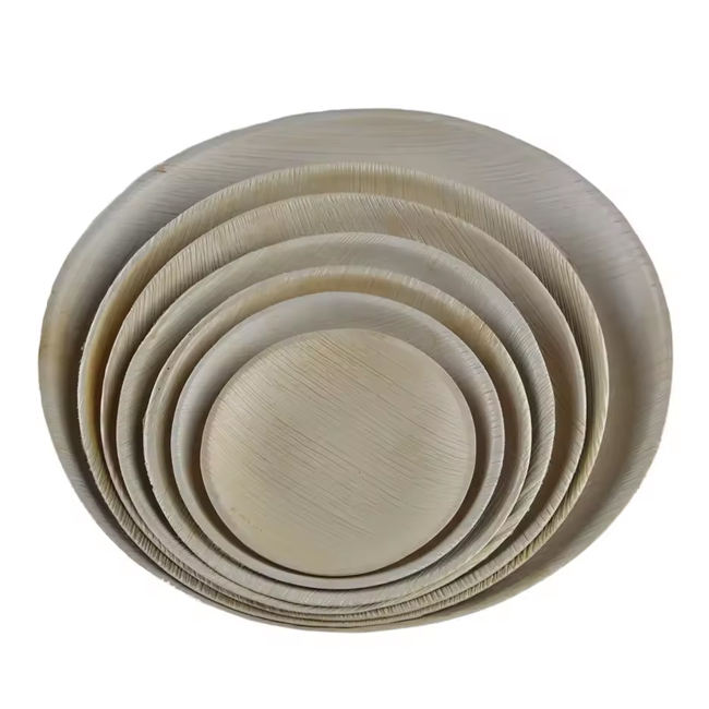 Assiettes jetables en feuilles de palmier rondes biodégradables écologiques pour le service des aliments pour les fêtes, les mariages, les événements et les restaurants