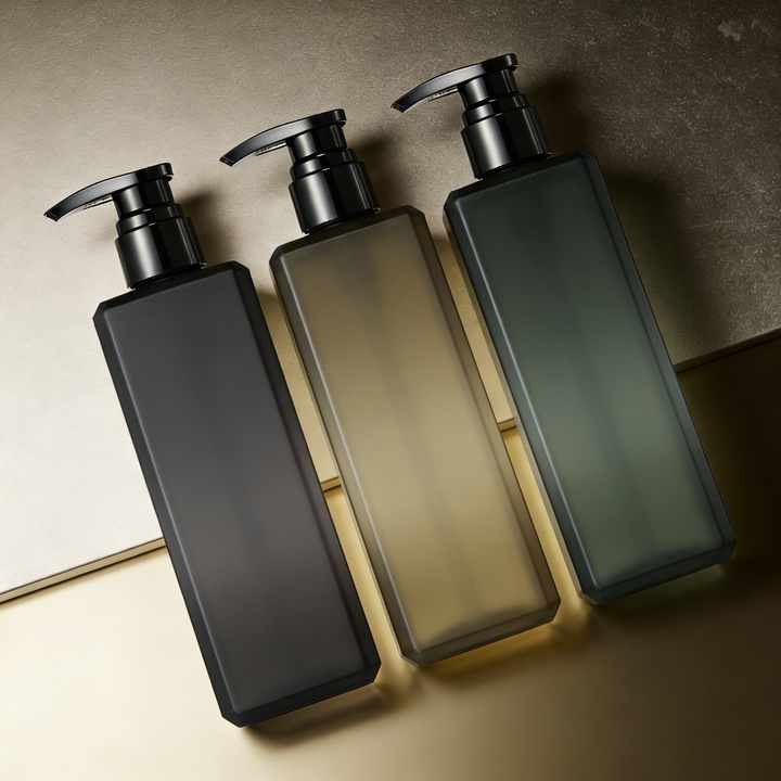 Bouteilles de shampoing, après-shampoing, gel douche et lotion écologiques et biodégradables, 500 ml, rechargeables, carrées, couleur personnalisée, pompe en plastique pour cheveux