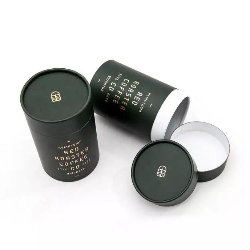 Emballage de tube à thé en carton noir écologique, tube en papier recyclé personnalisé