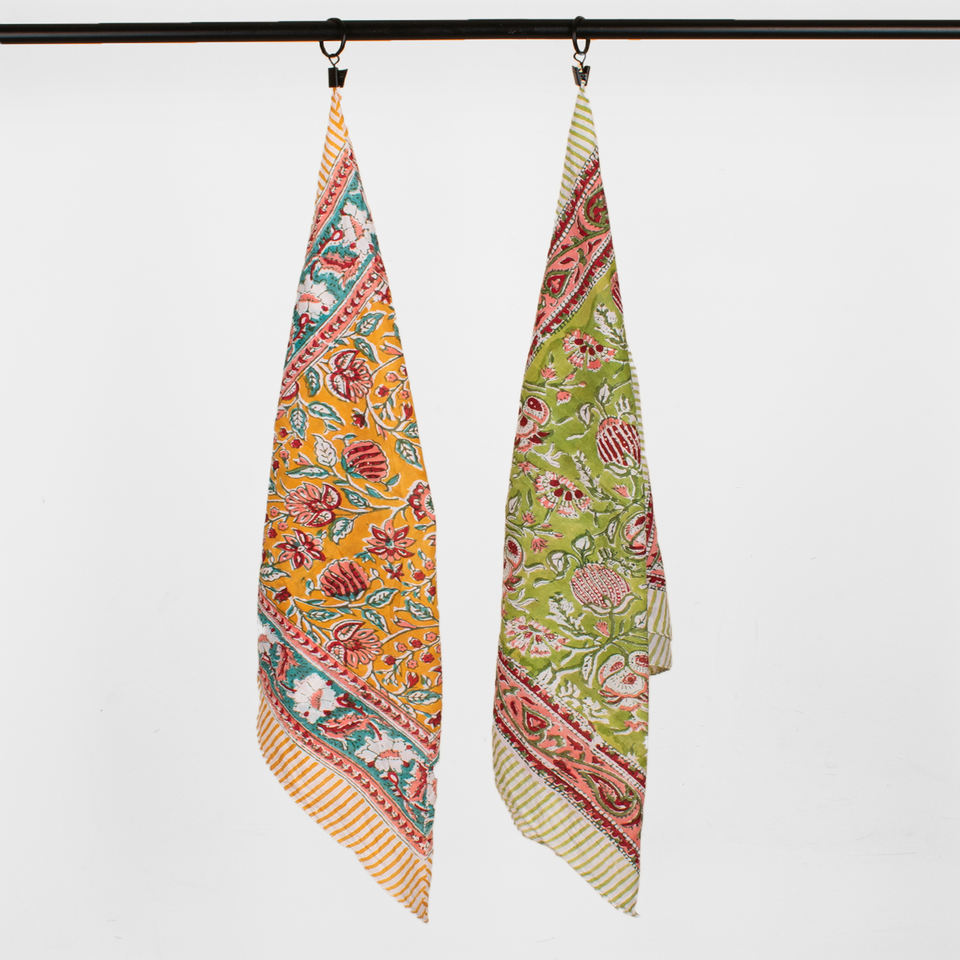 Foulard carré multifonctionnel en popeline de coton imprimé au bloc, écologique, fait main, ethnique, tendance, idéal pour les voyages et les cadeaux