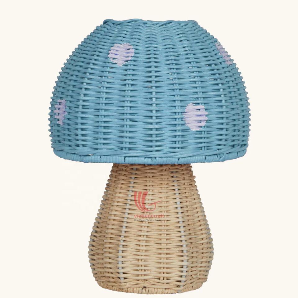 Lampe de table en rotin bleu écologique en gros Toadstool lunatique fabriqué à la main éclairage minimaliste flexible pour AC/DC Vietnam