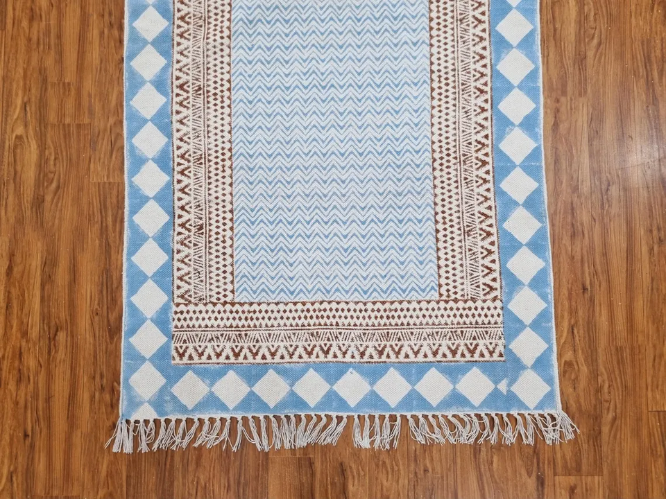 Tapis en coton imprimé bloc de main bohème écologique Style marocain anti-dérapant tufté tissage plat pour salon lavable à la main