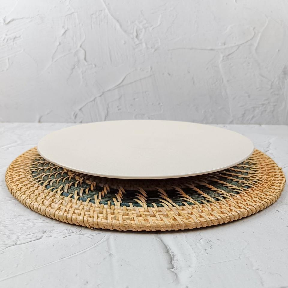 Set de table en rotin de style bohème écologique, tissé à la main, motif radial, forme ronde personnalisable, épaisseur fine, utilisation à domicile et pour les événements
