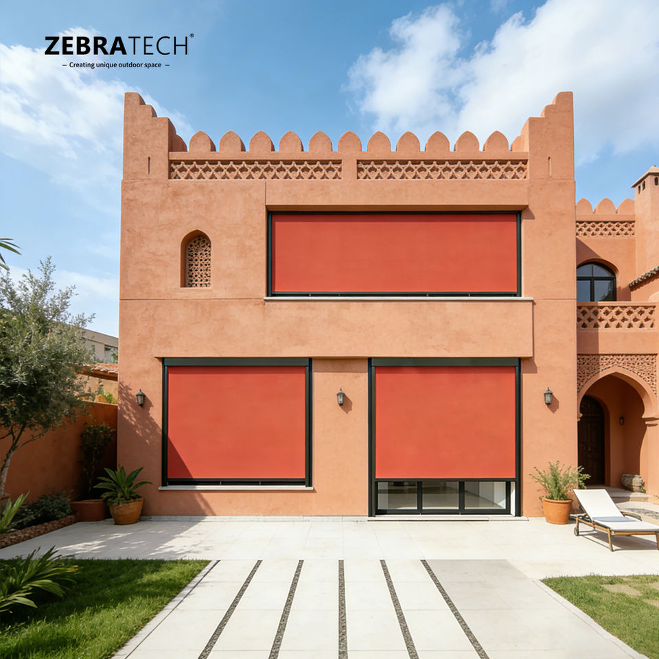 Tissu polyester extérieur respirant et écologique, épais, avec coutures de bord supérieures pour système de stores de pergola bioclimatique