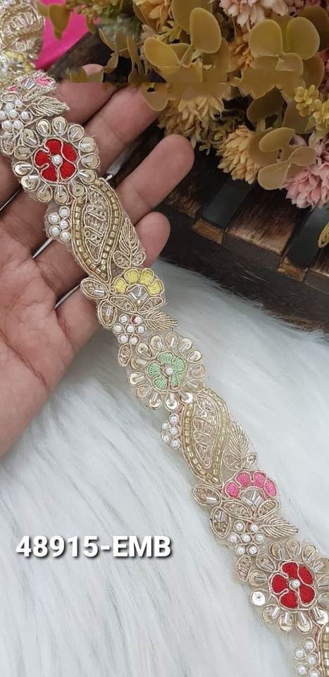 Ruban de dentelle brodé 100 % coton, écologique, multicolore, à motif festonné floral vintage ethnique, pour la confection de robes