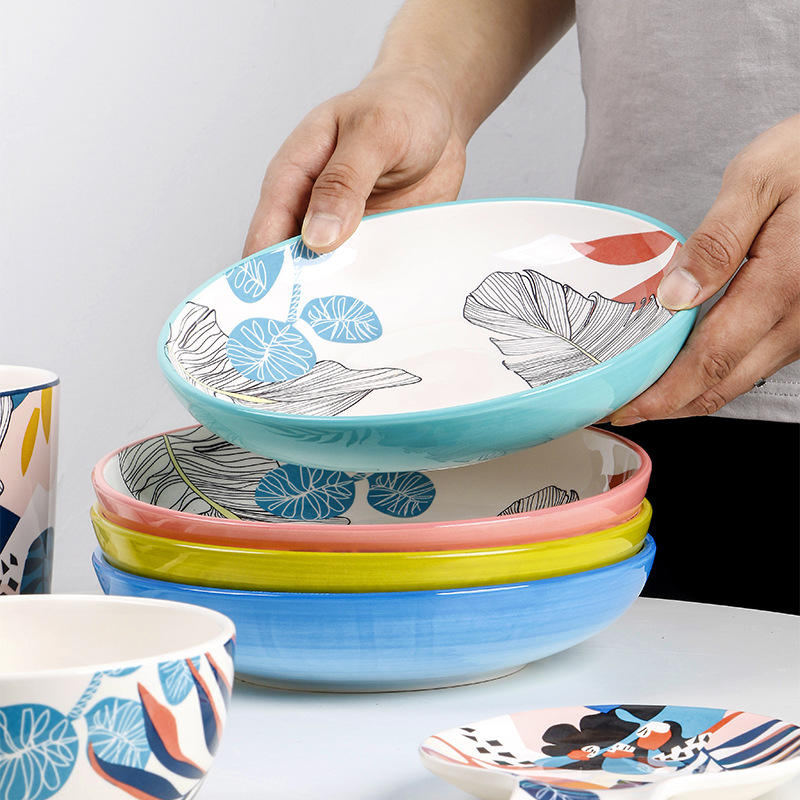 Assiette à soupe ronde en céramique écologique pour le camping et les activités de plein air