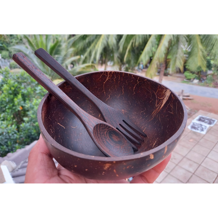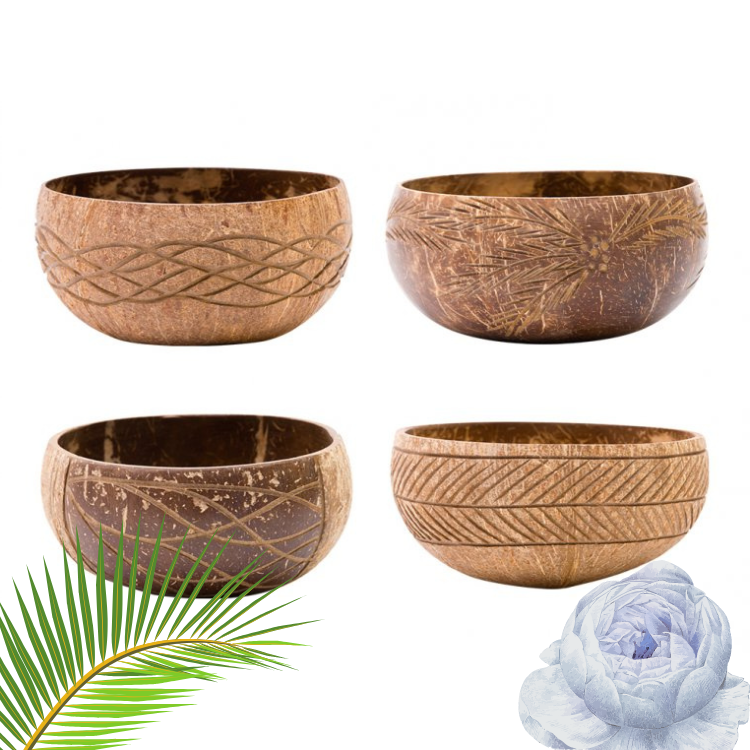 Eco-Friendly Coconut Shell Salad Bowl Set Handmade Vietnam Manufacturer Customized Home Kitchen Dinnerware Competitive Print