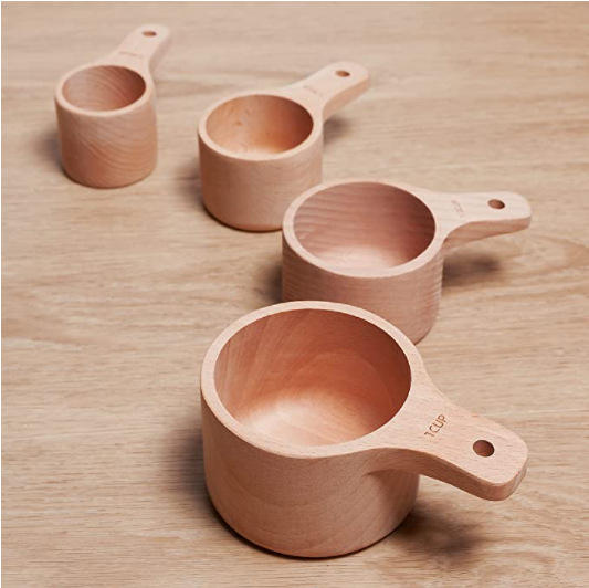 Éco-friendly cuillère à café ensemble 4 pièces Logo personnalisé outil de cuisine hêtre bois à mesurer tasse à mesurer