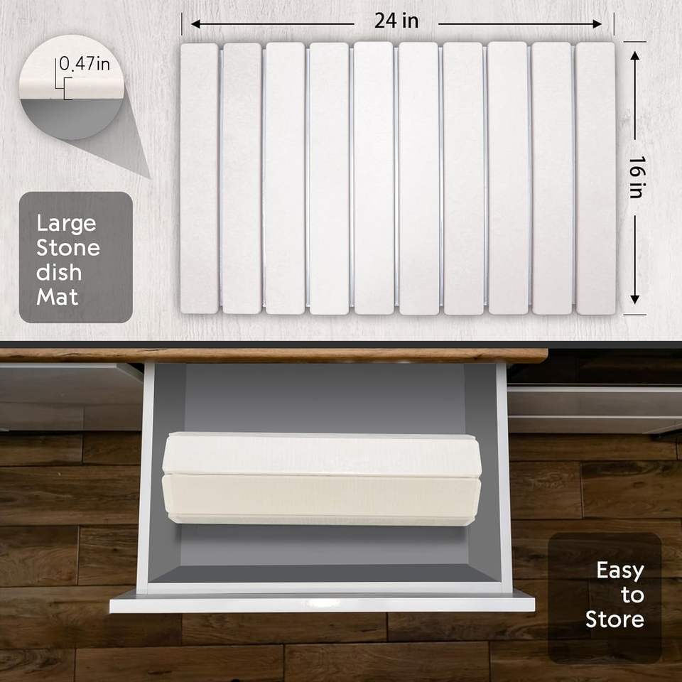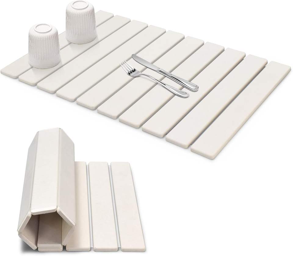 Tapis de séchage écologique pliable en diatomite absorbant pour comptoir de cuisine, vaisselle et tasses