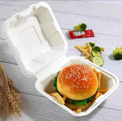 Boîte à hamburger biodégradable et écologique durable Papier naturel Bagasse Micro-ondes Étanche Conteneur à emporter Plats Assiettes