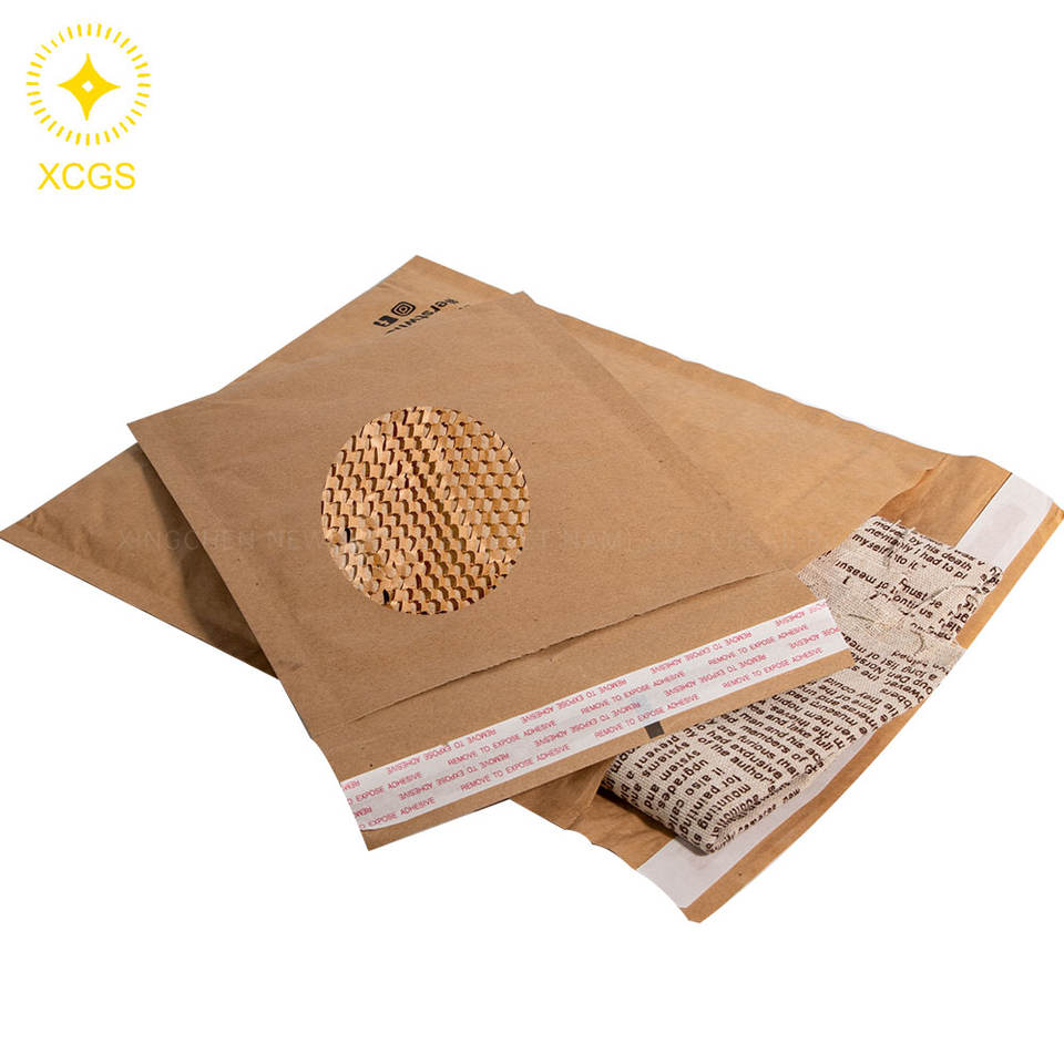 Papier d'emballage écologique compostable en nid d'abeille kraft Sacs d'expédition postaux rembourrés Emballage d'enveloppe imprimé de logo personnalisé