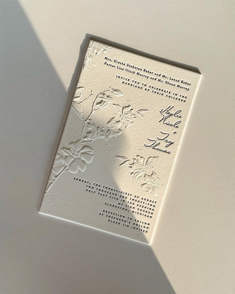 Invitations de mariage en papier de coton écologique, faites à la main, style vintage, avec bord déchiré et dorure à chaud, invitation personnalisée pour mariage