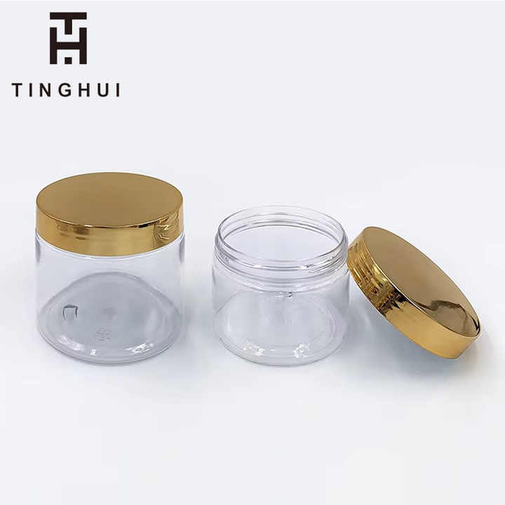 Bocaux cosmétiques en PET écologiques personnalisés avec bouchon à vis doré, 1oz, 2oz, 3oz, 4oz, 5oz, 6oz, 8oz, 10oz, 12oz, 16oz, vente en gros