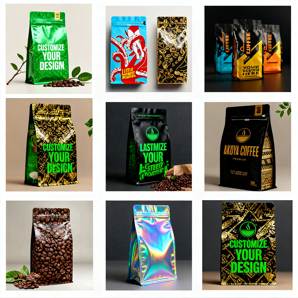 Sacs d'emballage en plastique écologique avec logo personnalisé Sacs en mylar debout avec fermeture éclair pour café thé