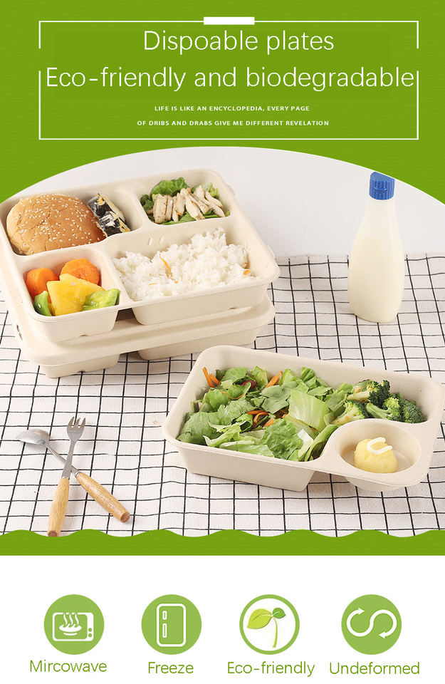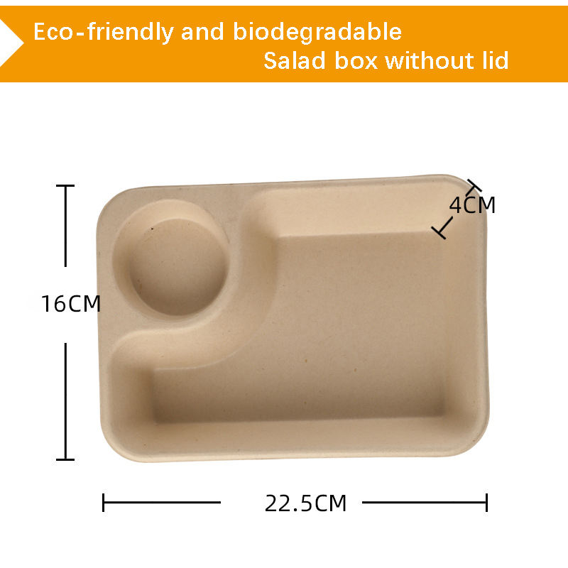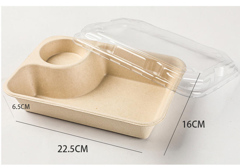 Boîte à lunch en bambou jetable écologique Couvercle carré biodégradable en bagasse Couleur naturelle 22.5x16x6.5cm pour poulet à hamburger