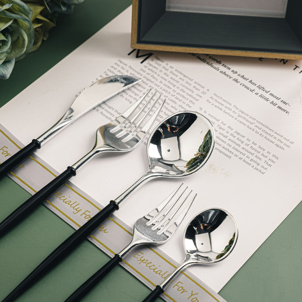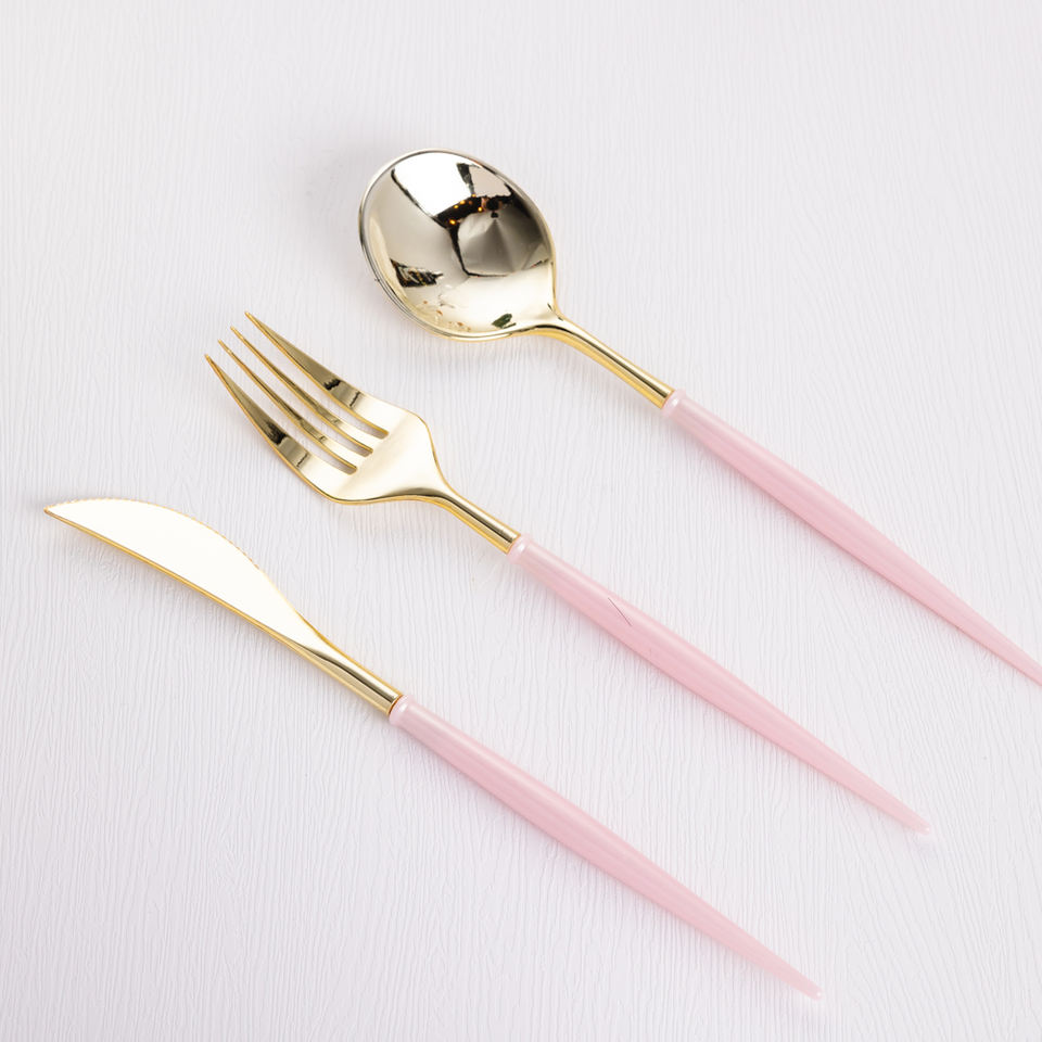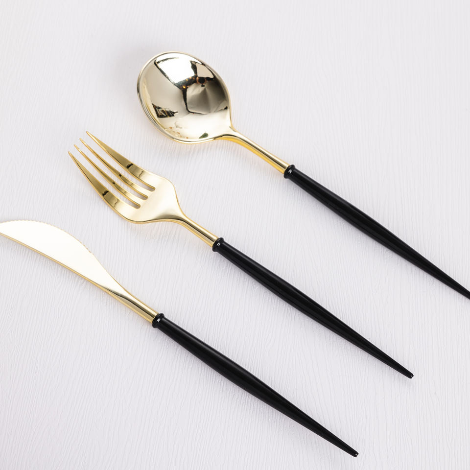 Ensemble de couverts jetables écologiques poignée personnalisable couleurs or argent plastique fourchette cuillère couteau 25 pièces/sac pour fêtes événements