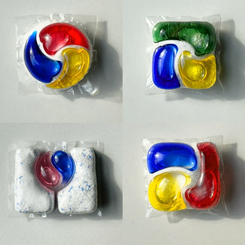 Capsules de lavage en gel écologiques jetables arc-en-ciel, distributeur de détergent liquide pour le nettoyage des vêtements